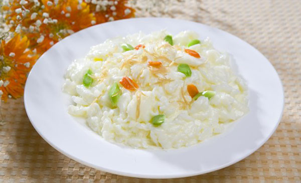 不論是炒鮮奶、炒豆?jié){還是炒蛋白,都要用到軟炒的烹調(diào)方法。很多廚師在烹調(diào)時(shí),為了防止粘鍋,采用多油炒制的方法,這種操作其實(shí)是錯(cuò)誤的。正確的操作方法是:猛火燒熱炒鍋,待鍋底變紅,然后倒入冷油,迅速旋轉(zhuǎn)鍋身,浸潤(rùn)鍋底和鍋壁。